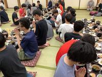 みんなで昼食です。自分たちでカツ丼を作ります。いただきます!