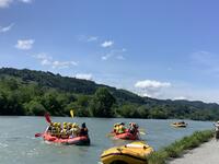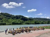 昨夜の雨で程よい流れ、天気も最高のラフティング日和。