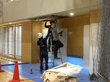 本日は体育館内部の作業で、キャットウォーク下の天井の撤去が行われました。